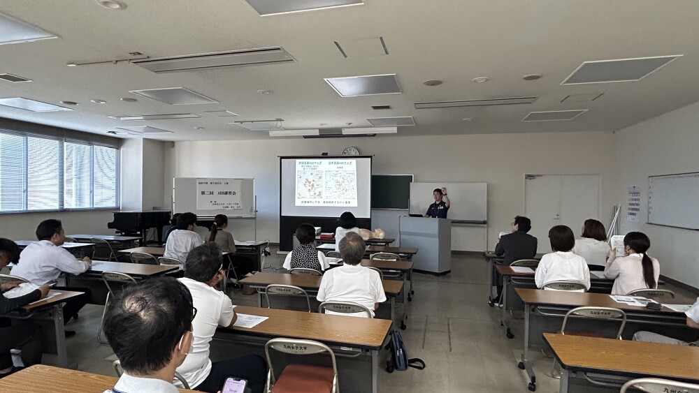 講義では、心臓突然死とAED(自動体外式除細動器)についての説明があり、CPR(心肺蘇生法)とAEDの理論と実践についてお話を伺うことができました。